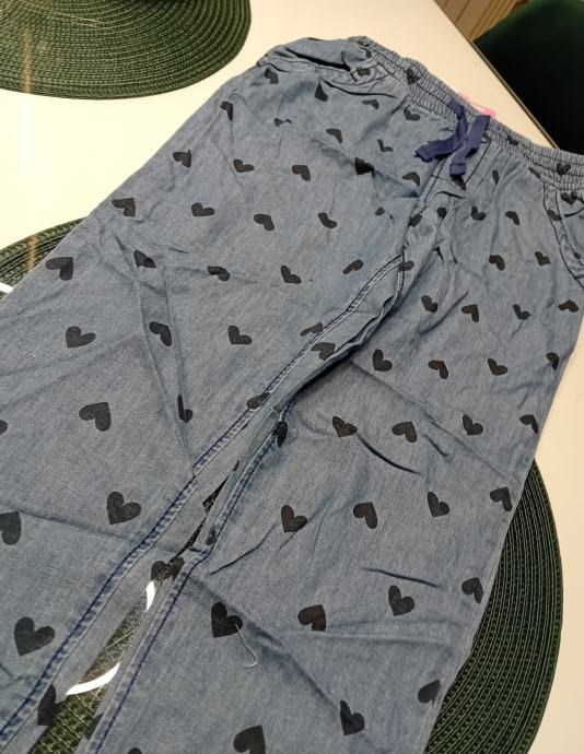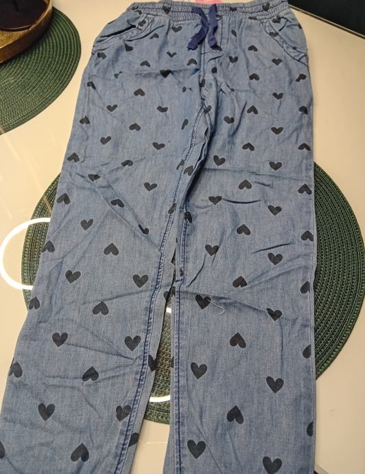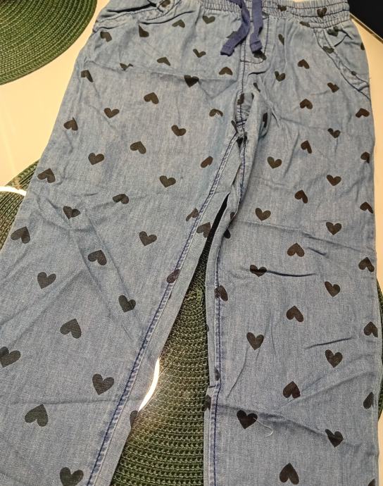 PAMUČNE LAGANE HLAČE NA SRCETA vel.128 - NOVO S ETIKETOM