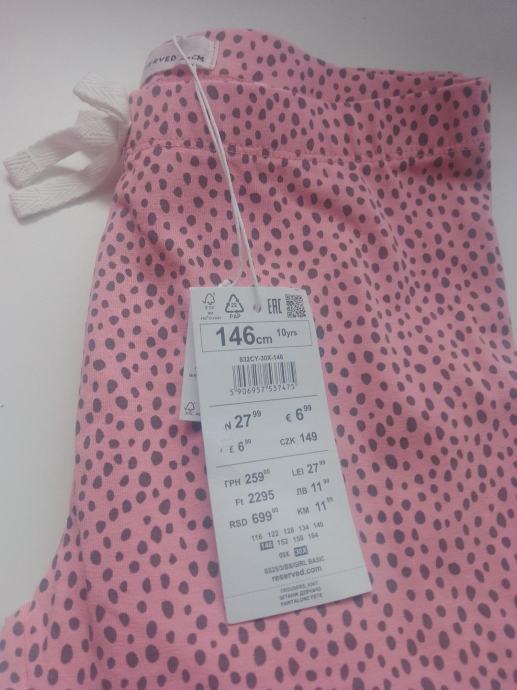 Nove Reserved tajice kao hlače s uzorkom , nekorištene i bez ikakvih mana, još s etiketom , veličina 146 . Curki se ne svidjaju. Kvalitetni, deblji pamuk, nisu skroz tanke kao ljetnje. Prodajem za 4 eura + poštarina. Za popust na više artikala pogledajte i moje ostale oglase.