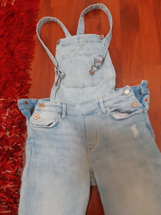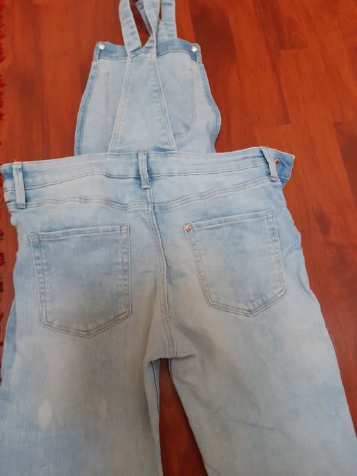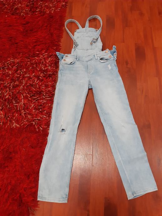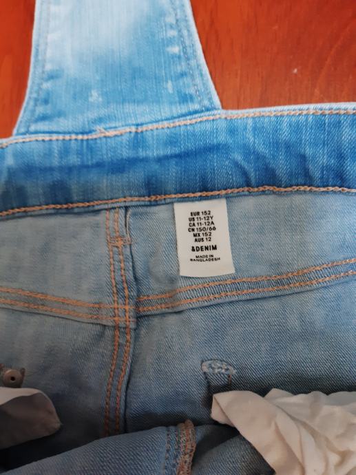Talijanske djecje traperice s tregerima, vel. 152. Sirina struka, samo prednja strana: 33 cm, bokova: 41 cm, duzina nogavice: 89 cm. Za 11 - 12 godina.