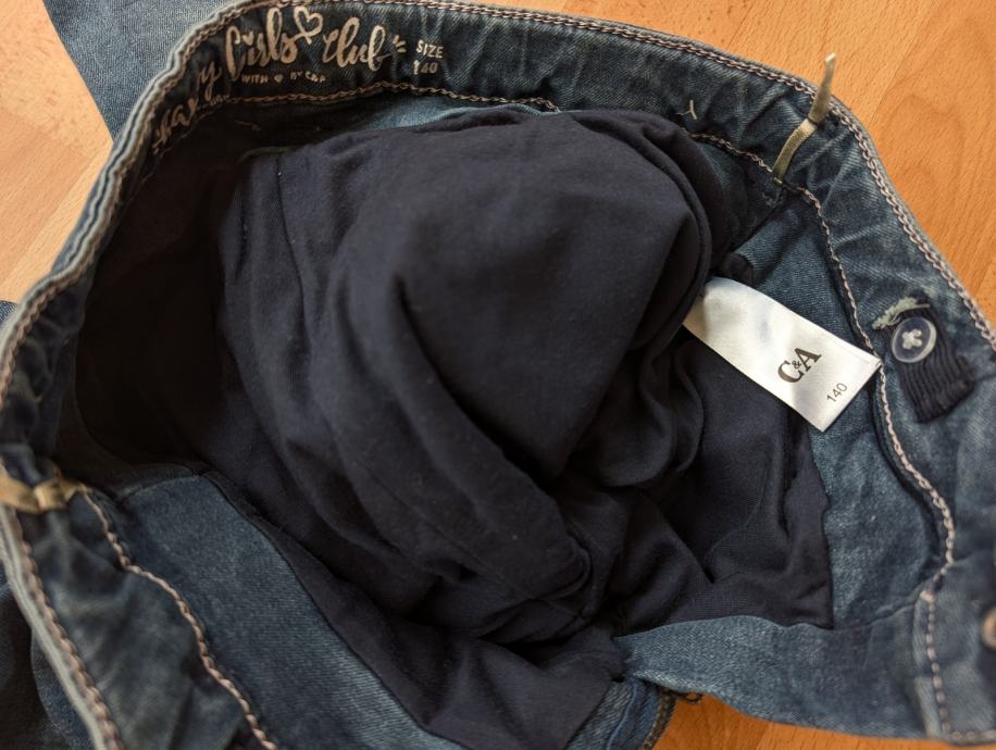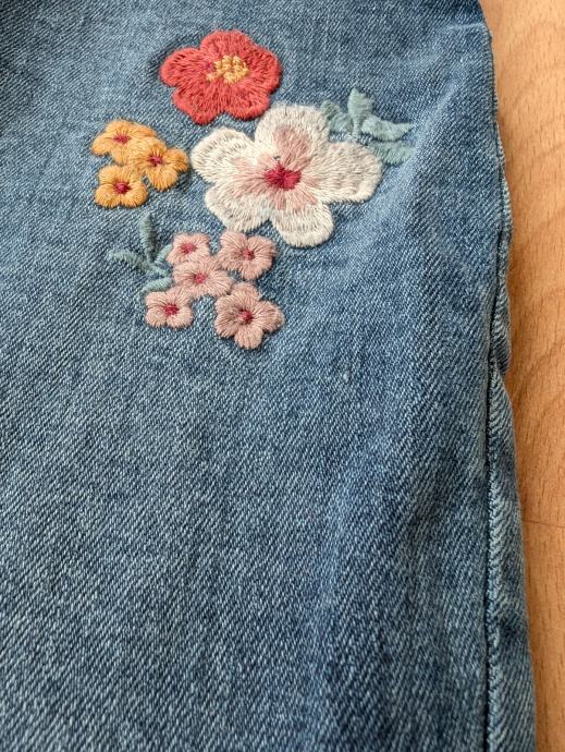 Termo hlače / traperice br. 140 za djevojčice, s motivom cvijeća naprijed, s dva džepa naprijed i dva otraga, marka C&A, imaju pamučnu podstavu da su toplije, idealne za zimu i hladno vrijeme, dužina je uslikana.