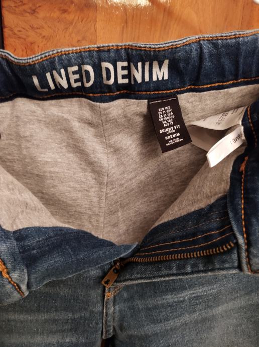 Dječje traperice H&M, podstavljene (termo) pamučnim materijalom, u struku je gumica za korekciju širine, veličina 152, dužina 87cm , širina u bokovima 39cm.