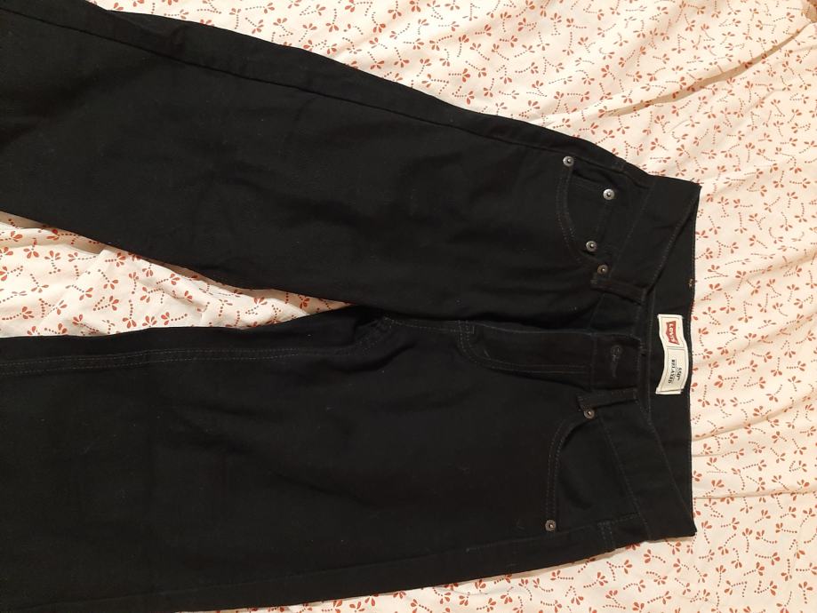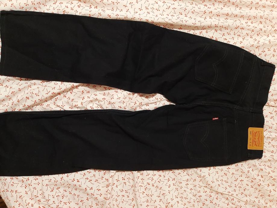 Nove crne Levis relaxed hlače. Nikad nošene, skinuta samo etiketa. Ravni kroj. Šire nogavice. Dužina od vrha pasice do dolje 91cm, širina pasice 33cm, dužina međunožja 67cm. Širina nogavice dolje 20.5 cm. Vel. 26- 26