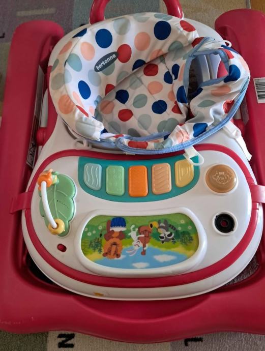 Bertonne hodalica, vidljivi tragovi korištenja (malo izgrebana, navlaka je malo požutjela i 1 igračkica se čupa). Osim vizualnih nedostataka sve drugo funkcionira!