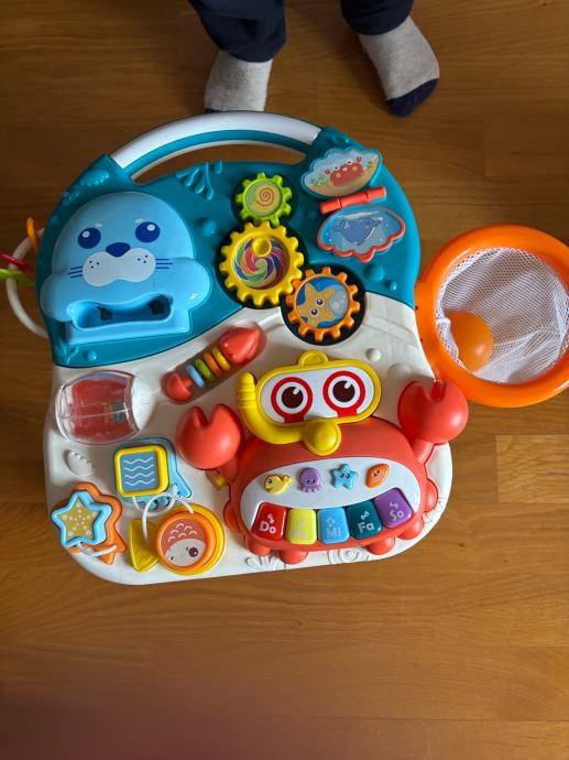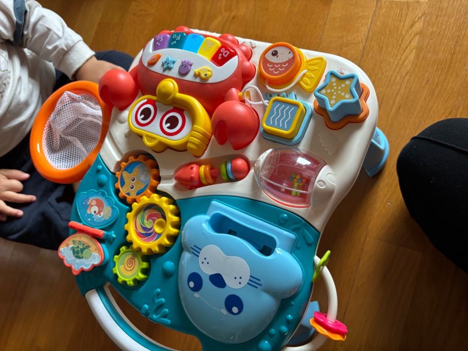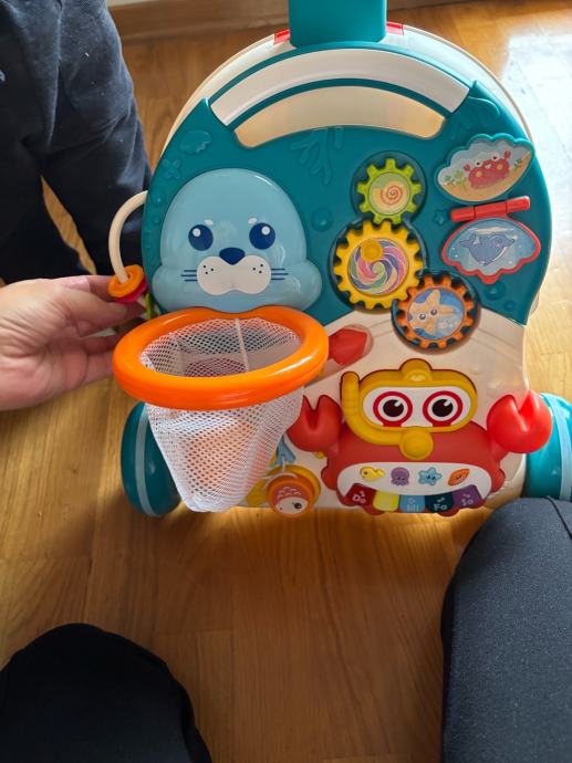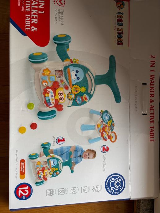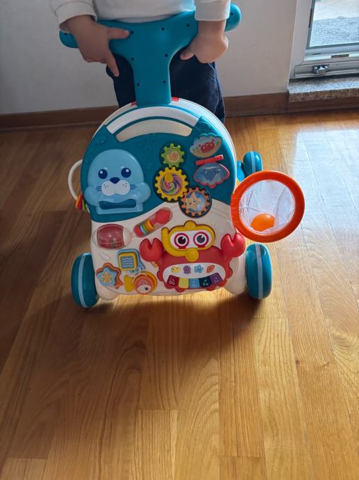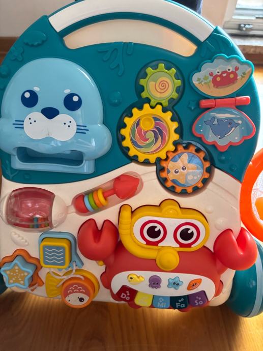 Interaktivna guralica 3u1. Igračka je u potpunosti izrađena od plastike u vrlo atraktivnim, estetskim bojama s mnoštvom zabavnih atrakcija. Guralica, stol i ploča u jednom. Multifunkcionalna igračka omogućit će djetetu da svlada prve korake, upozna različite oblike, boje i zvukove.