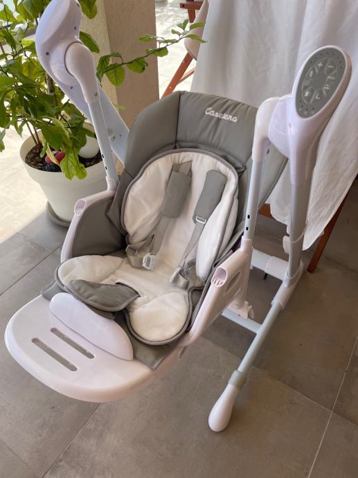 Radi na struju ili na baterije. Repruducira glazbu, različite brzine ljuljanja i tajmer zaustavljanja.