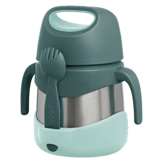 Posuda dolazi s vilicom i žlicom koje se praktično spremaju u prilagođeni utor, a jednostavne ručke omogućuju djeci da samostalno otvore posudu, potičući njihovu samostalnost. Uklonjive ručkice omogućuju da posudicu mogu koristiti i starija djeca, a jedinstveni stoper sprječava prejako stezanje poklopca, čineći ga sigurnim i praktičnim za korištenje.