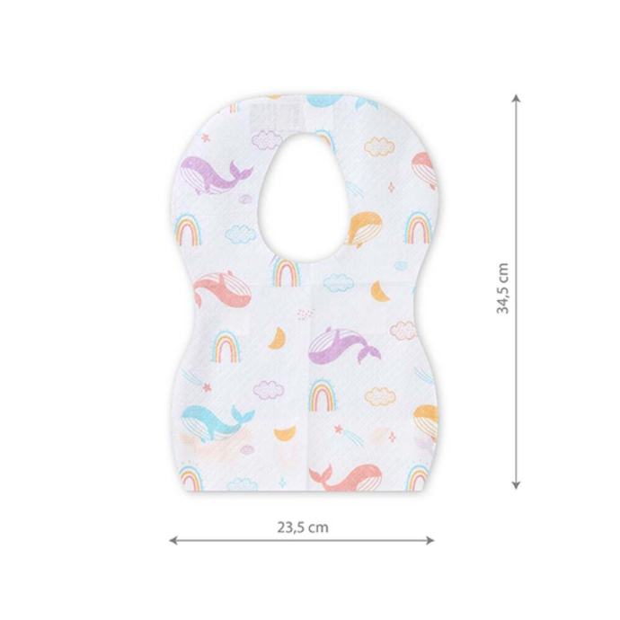 Pripremite se za jelo bez nereda s jednokratnim podbradcima i izbjegnite stres hranjenjem svojeg djeteta gdje god se nalazili. Podbradci su mekani i čvrsti te imaju vodootpornu podlogu koja štiti djetetovu odjeću od mrljanja.