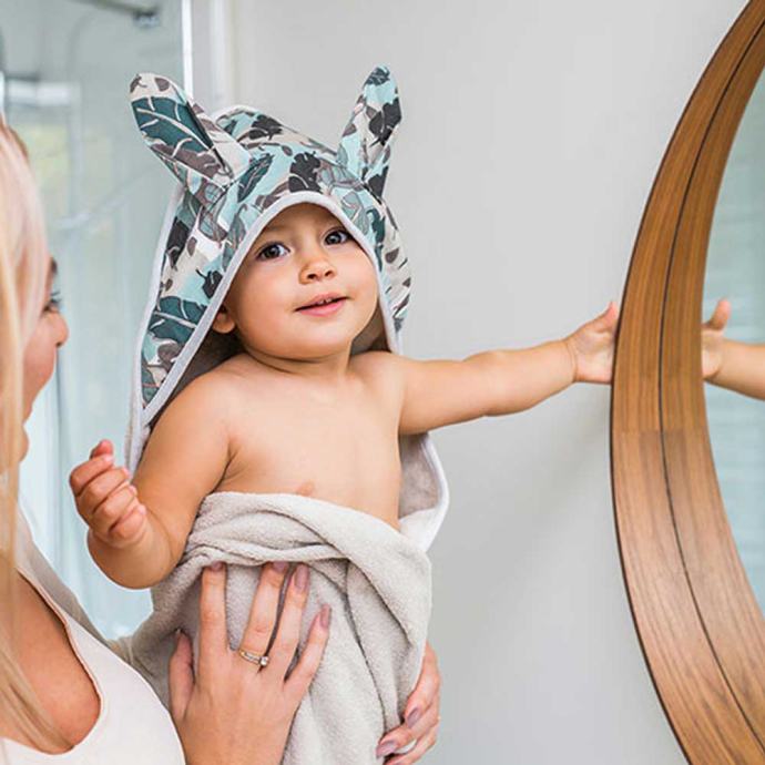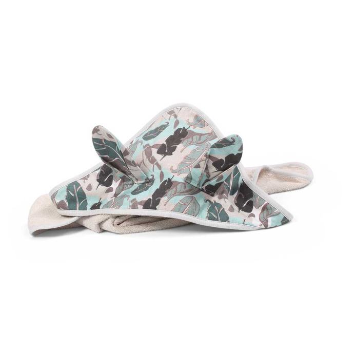 BUNNY EARS je mekana navlaka za kupanje s 3D elementima (ušima), pakirana u ukrasnu kartonsku kutiju. Pruža udobnost i njeguje osjetljivu kožu Vaše bebe nakon kupanja.