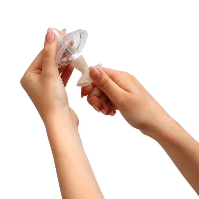Četkica je opremljena sa vakuumskim prianjajućim dijelom tako da možete četku postaviti na svaku ravnu površinu, te tako olakšati sušenje. Na vrhu se nalazi meka spužvica koja se prilagođava obliku bočice.