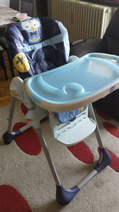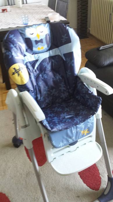Prodajem hranilicu Chicco Polly 2u1 sa uzorkom Mr Owl. Mogucnost podešavanja visine (5 visinskih položaja) te sklapanja za uštedu prostora. Lako se održava, sve navlake se mogu skinuti i oprati. Chicco Polly 2 u 1 je praktična stolica za hranjenje koja slijedi bebin rast i razvoj od šest mjeseci do treće godine života. U prvoj fazi Polly je sigurna i udobna hranilica, a u periodu kad dijete uči samostalno jesti, ona postaje prva stolica koja mu omogućuje sjedenje za stolom zajedno sa roditeljima. Hranilica Polly prati djetetov rast, podložak za sjedenje može se podesiti u 3 položaja, a visinu hranilice moguće je regulirati u 5 položaja. Iznimno je sigurna i udobna, te time idealna za korištenje u onom periodu života u kojem se dijete uči samostalno hraniti. Uklanjanjem pladnja postaje prava stolica kojom se dijete može koristiti za stolom. Hranilica Polly ima 2 kotača i sigurnosne stopere, pladanj koji se može ukloniti, sigurnosne remene za vezivanje, mrežicu za dječje potrepštine i podložak za odlaganje čaše ili bočice. Namijenjena za djecu od 6 do 36 mjeseci (do 15kg).