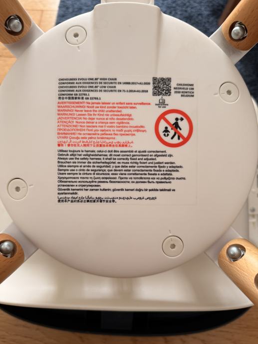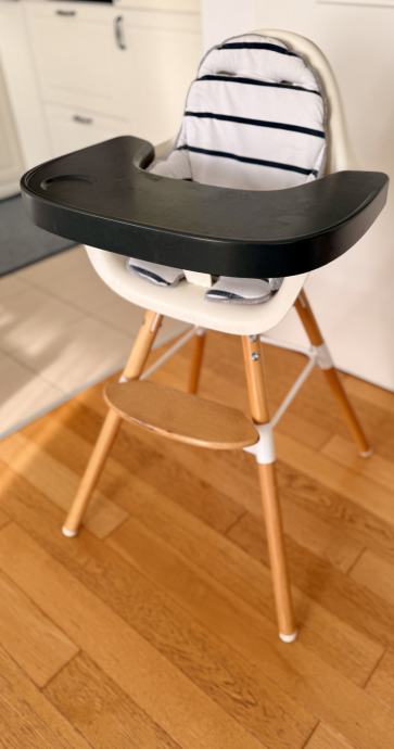 Visina sjedala za korištenje kraj stolice za hranjenje: 59cm. Visina oslonca za noge: 42cm.