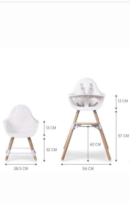 Evolu 2u1 hranilicu mogu koristiti djeca od 6 mjeseci do 6 godina. Ima plastično sjedalo u kombinaciji sa drvenim nogama, te se može koristiti kao hranilica ili dječja stolica. Jednostavno se pretvara iz hranilice u stolicu. Hranilica odgovara standardnom obiteljskom stolu visine 75cm, a kao stolica odgovara dječjem stolu visine 50cm. Ima sigurnosni pojas u 5 točaka i odbojnik između nogu koji se može ukloniti.