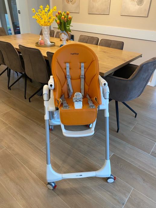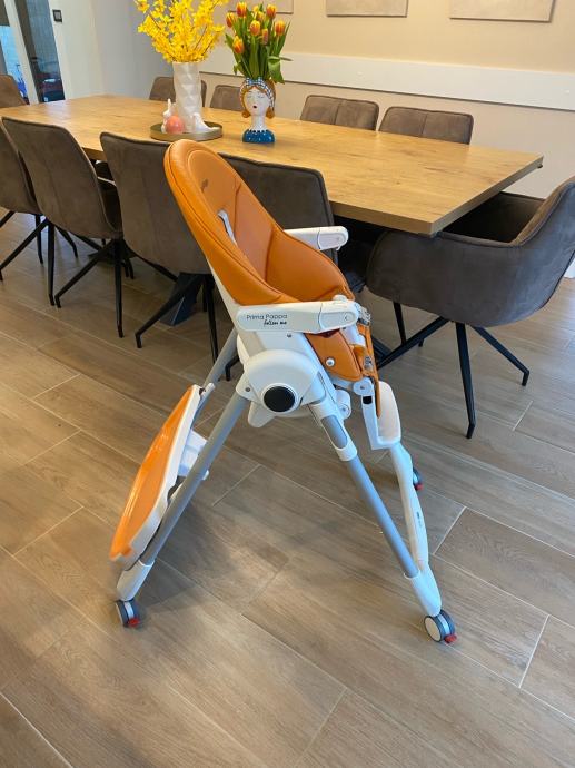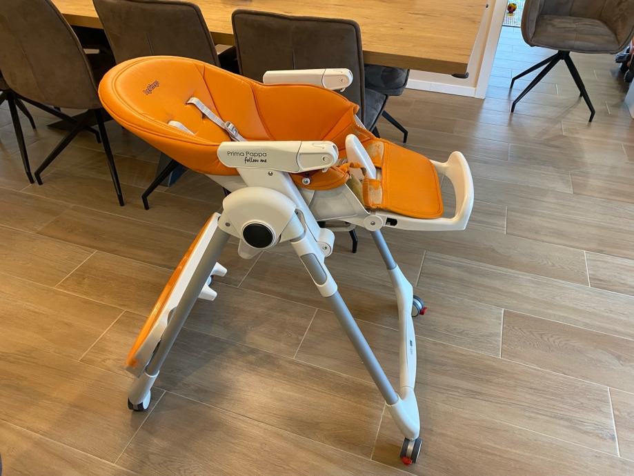 Peg Perego Prima Pappa hranilica "Follow Me" hranilica je sa četiri kotača s kočnicama i posebnom zaštitom od proklizavanja djeteta ispod pladnja za serviranje hrane.