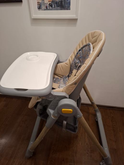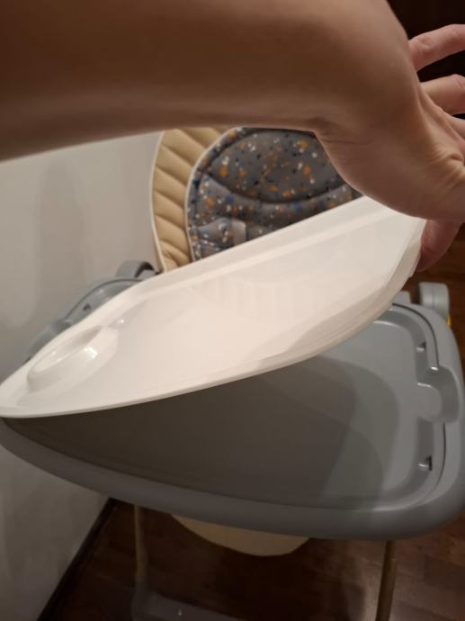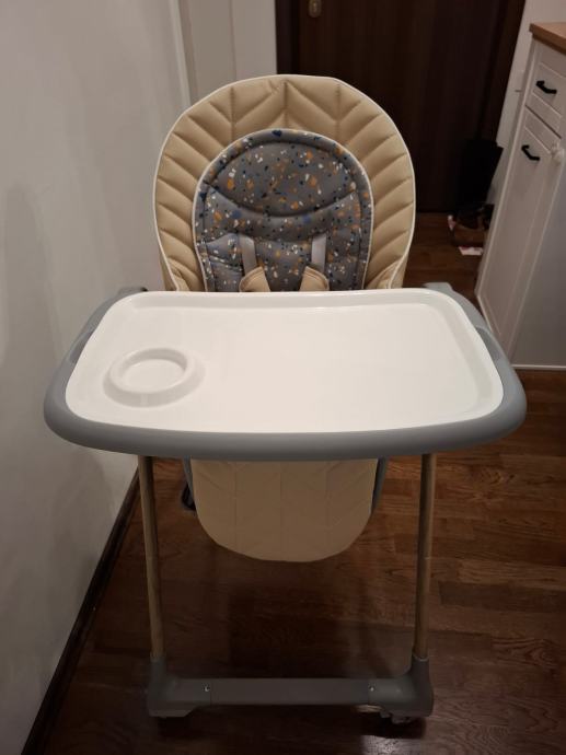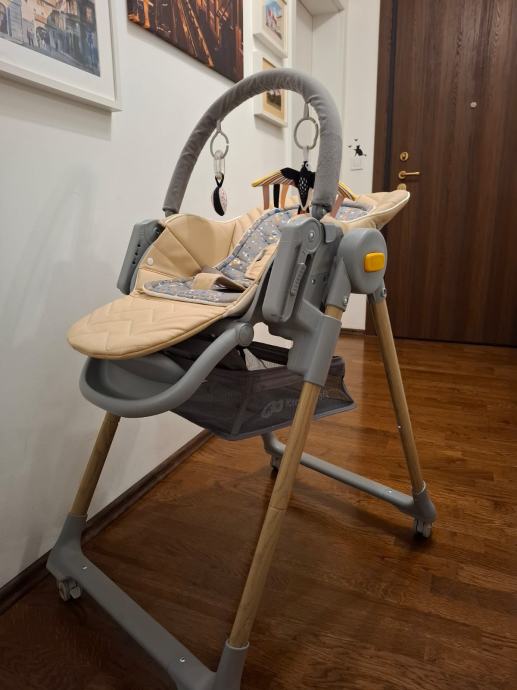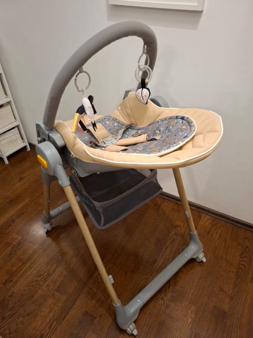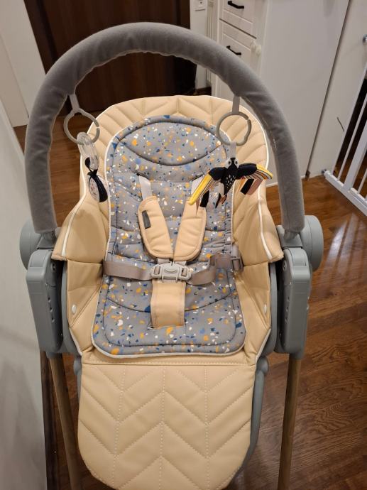 Dobro očuvana dječja stolica s podloškom i igračkama za novorođenčad.