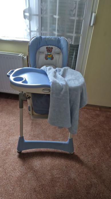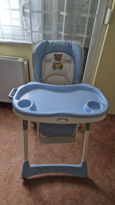 Prodajem rabljenu,ali dobro ocuvanu hranilicu za djecu.Hranilica je sklopiva, podesiva,pojedini djelovi su odvojivi i mogu se prati.Uz hranilicu ide poklon,dekica