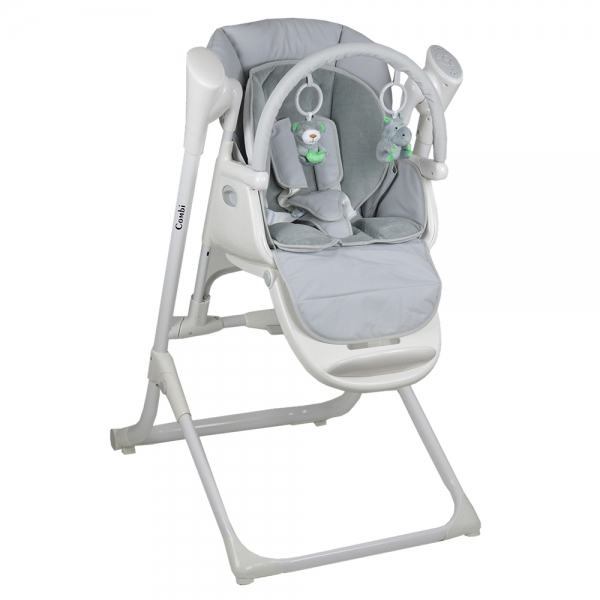 Combi hranilica koja raste zajedno s Vašim djetetom. Koristi se od samog rođenja pa sve do 36 mjeseci. Kombinacija hranilice i električne ljuljačke. Vrlo tihi način rada pomoću adaptera za struju ili baterija.