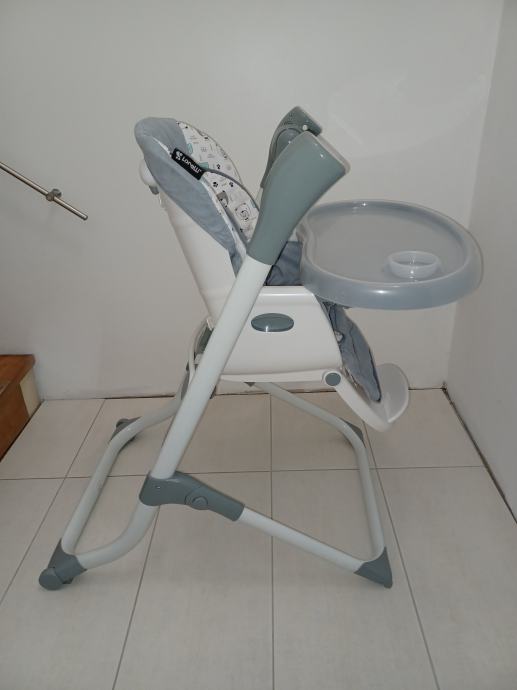 Sigurnosni pojas u 5 točaka, namještanje visine na 6 razina, 3 pozicije oslonca za noge, 4 pozicije namještanja naslona, dvostruki pladanj (gornji odvojiv), utor za bočicu, luk sa igračkama, periva navlaka na skidanje, siva boja.