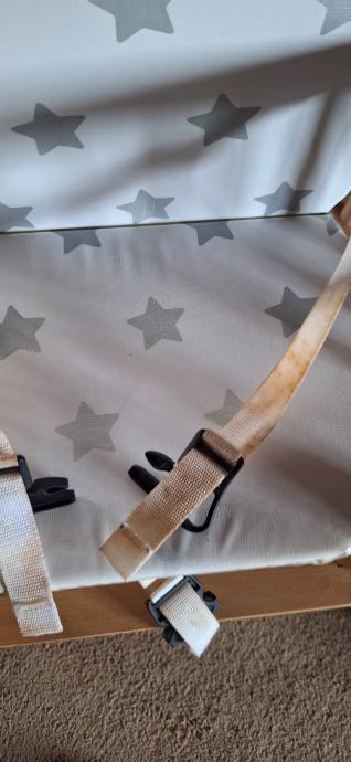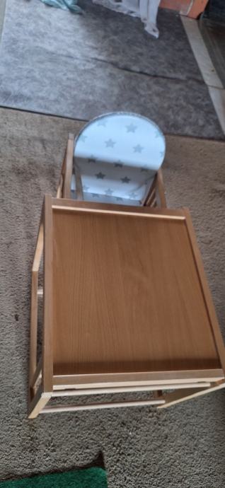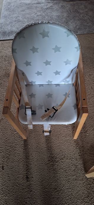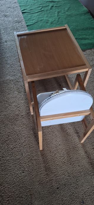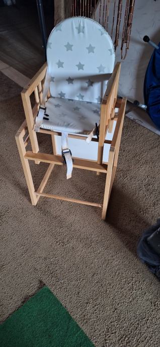 Prodajem dječju hranilicu rabljenu koja kada dijete poraste moze biti stol i stolica na kojemu se moze igrati. Bijeli remeni su od stajanja pozutili. Malo rabljeno, beba ju je koristila sezonski.