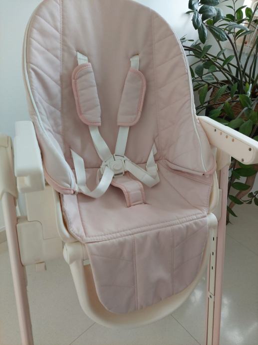 Potpuno očuvana i uredna hranilica, bez oštećenja. Prilagodljiva po visini, kao i po nagibu naslona i stepenice za noge, Vrlo jednostavna i praktična za korištenje. Sklopiva, zauzima malo mjesta. Stolić se može potpuno maknuti pa se dugo može koristiti kao stolac za blagavaonski stol. Navlaka je periva u vešmašini.