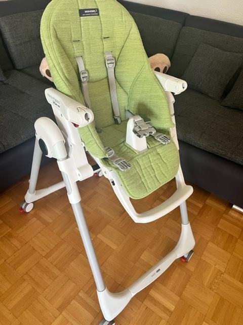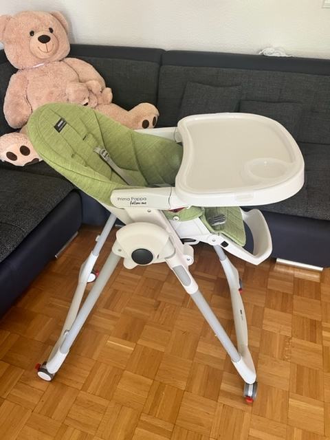 Hranilica Peg Perego Prima Pappa follow me, korištena godinu dana, u super stanju, kupljena nova u baby centru, može biti ležaljka na početku, prilagodljiva visina/naslon/oslonac za noge. Dvostruki pladanj sa perivim dijelom, presvlaka od "stain resistant/breathable" tkanine skidiva i periva.