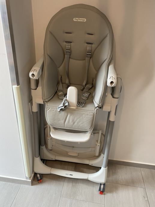 Prodajem hranilicu Peg Perego Prima Pappa Follow Me sive boje u odlicnom stanju. Hranilica ima minimalne znakove koristenja i to samo na prozirnom pladnju, bijeli je savršeno očuvan a mogu se prati u perilici posuđa. Hranilica je odlična za bebe koje još ne sjede (može se nagnuti) pa sve do većih uzrasta zbog podesivih naramenica i oslonca za noge, kao i samih nožica koje se mogu spuštati ili podizati kako dijete raste. Vrlo je jednostavna za sklapanje i rasklapanje i zauzima malo mjesta kad je sklopljena. Sjedište tj. presvlaka je od eko kože koja se jako lako čisti, te nema nikakvih oštećenja.