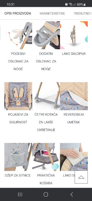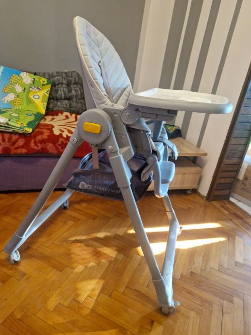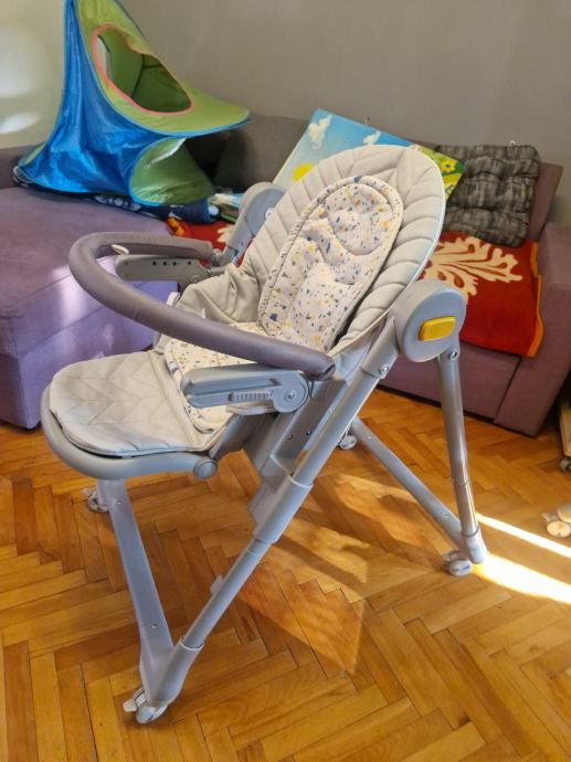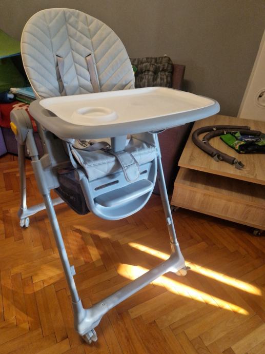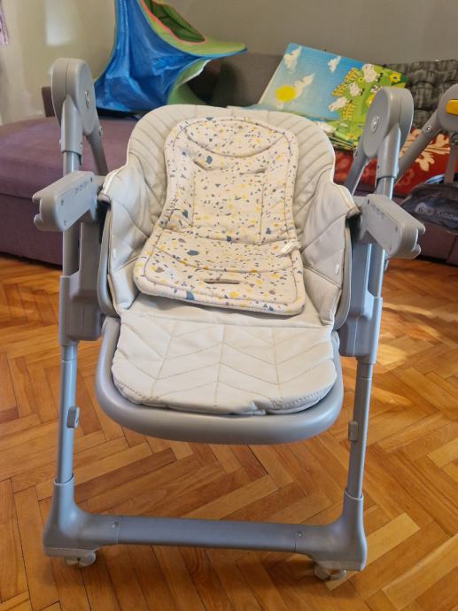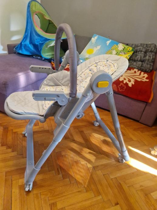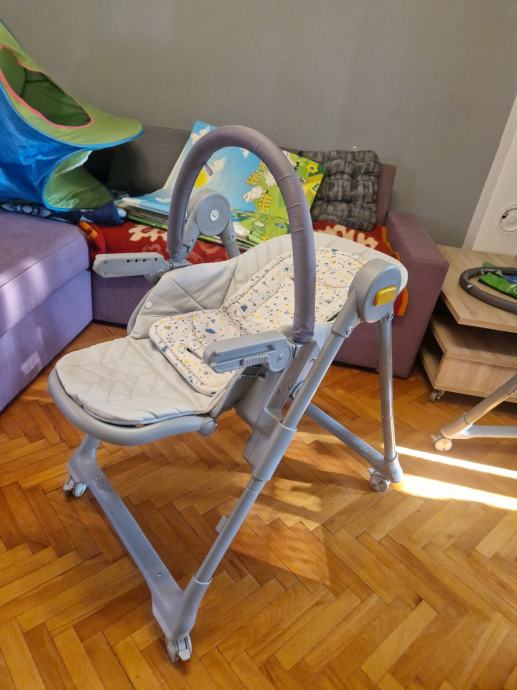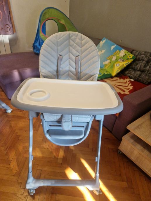 Lako se premješta po prostoriji jer ima kotače koji se mogu jednostavno zakočiti. Mi smo ju koristili i za uspavljivanje.Ispod hranilice je velika košara za stvari i iza na naslonu mali đep.