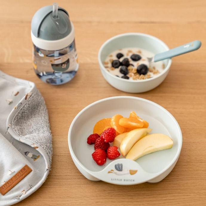 Neka svaki obrok bude poseban za vašeg mališana. Stvorite savršeno usklađen stol inspiriran kolekcijom Sailors Bay. Jedrilice, galebovi i svjetionik vodit će vašeg mališana kroz različite okuse i teksture hrane. Ovaj set uključuje sve posuđe potrebno za svaki obrok i užinu tijekom dana. Tu je tanjur, zdjelica, čaša i pribor za jelo. Sve je izrađeno od čvrstog materijala i dizajnirano za vježbanje ponašanja za stolom i povremeno prolijevanje i bacanje.