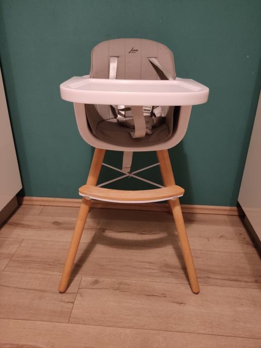 "Stolica za hranjenje Luna 2u1 tvrtke Nania raste s vašim djetetom. Praktičnu i udobnu visoku stolicu možete lako pretvoriti u dječju stolicu i koristiti je od do 3–5 godina. Svojim dizajnom savršen je za svaki dom i dječju sobu."
