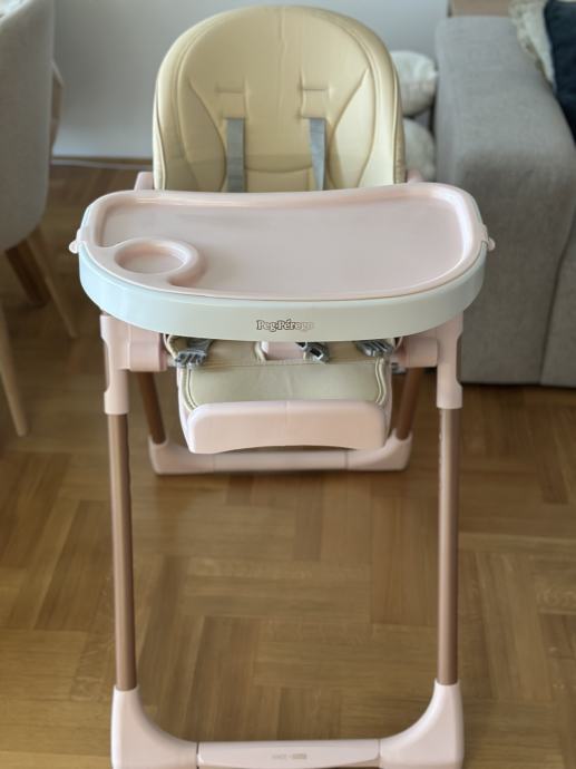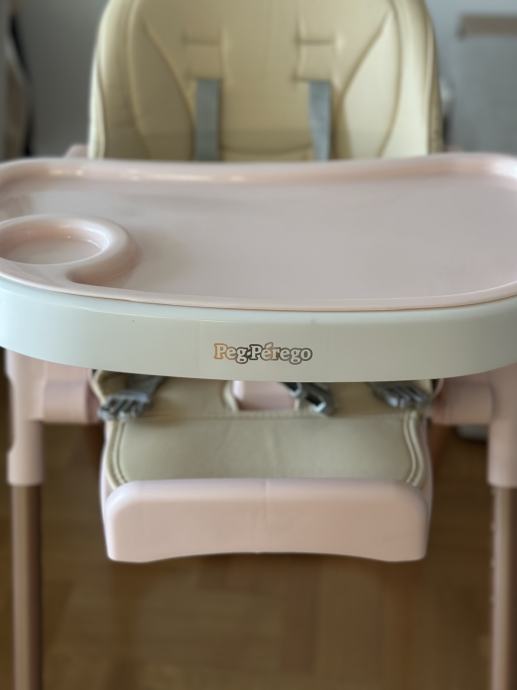 Peg Perego Prima Pappa hranilica posebnom zaštitom od proklizavanja djeteta ispod dvostrukog pladnja za serviranje hrane.