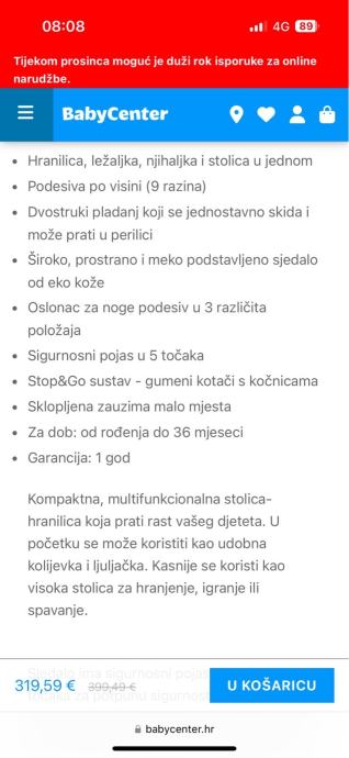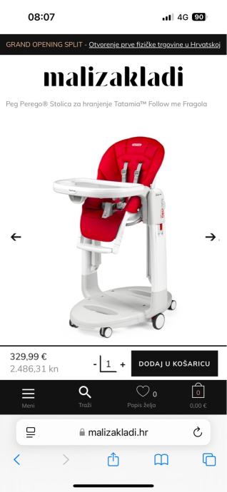 Peg Perego Tatamia hranilica od malih nogu. Prvo ljuljacka a zatim hranilica. Odlicna investicija. Navlaka je malo popucala, ali i dalje se moze koristiti. Navlaka se moze kupiti nova original ili mozete naruciti novu na Temu/Shein za koji eur ( isto su ok).