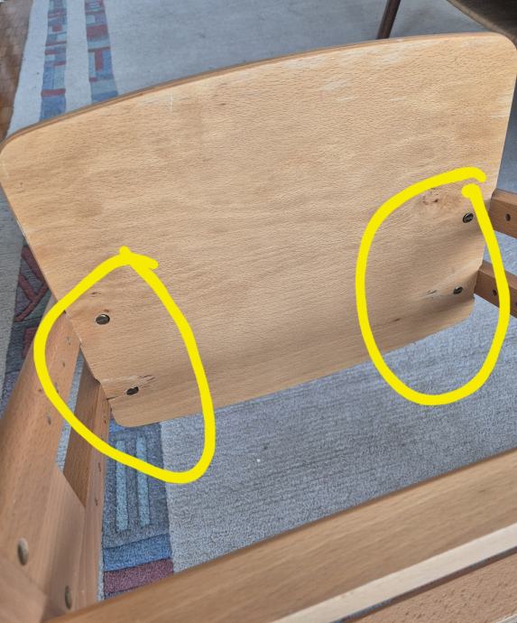 Ostecenje na polici za noge sa donje strane. Oznaceno na slici. Zaljepljeno, a može se ušarafiti i dulji vijak umjesto imbusa.
