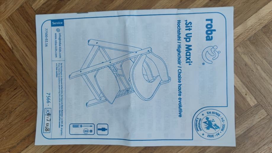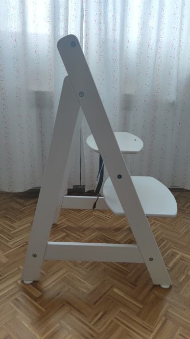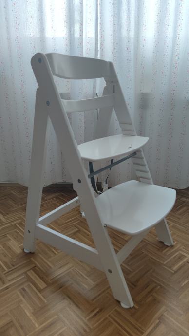 Roba Sit up Maxi hranilica za djecu. Drvena i stabilna, podešavanje visine sjedišta i ploče za noge, nosivost do 50 kg. Korištena 1 godinu, boja nije pohabana. Nedostaci se vide na fotografijama 7 i 8: previše smo zategnuli naslon.