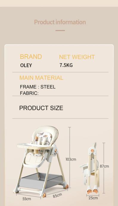 Sigurna i stabilna: dizajn stolice za hranjenje je stabilan i osigurava da dijete neće slučajno pasti ili skliznuti