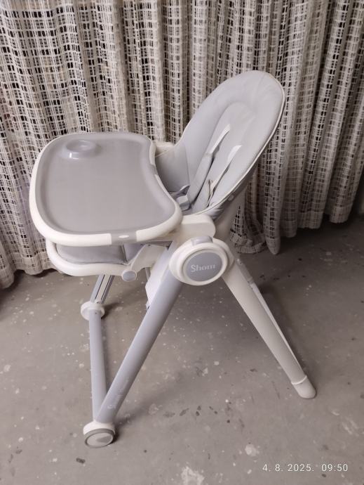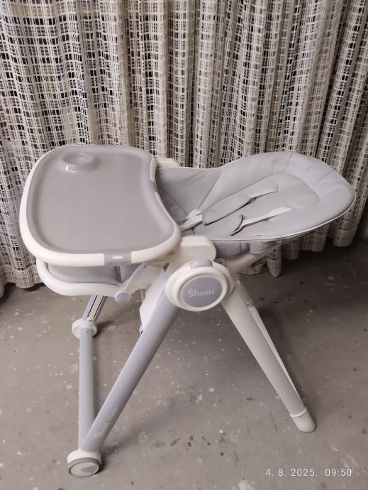 Prodajemo hranilicu za bebe marke Schom. Sklopivi nogari, sjedalica se odvaja od nogara, podesiva visina sjedala u više točaka, podesiv nagib sjedala u tri položaja, podesiv držač za noge, pladanj se može skinuti, gornji poklopac pladnja se može skinuti, lagana, laka za rukovanje. Dobro očuvana - 60 eur. Mob 099/5146909