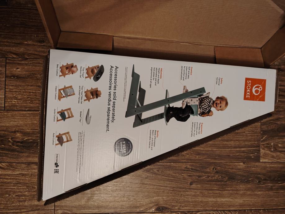 novu zapakiranu Stokke tripp trapp stolicu u soft mint boji.