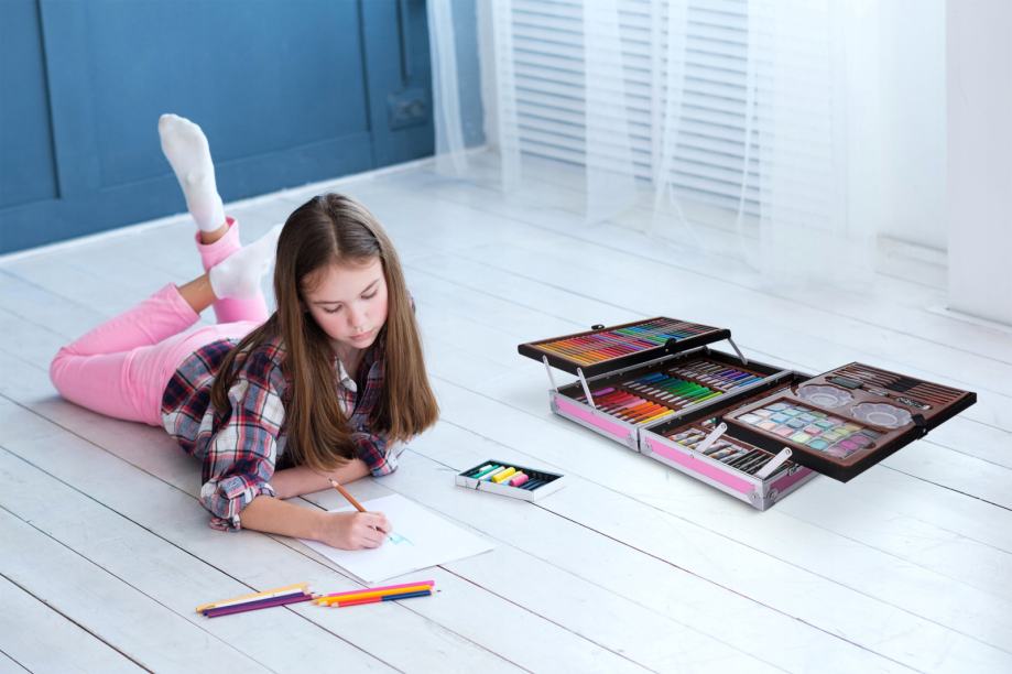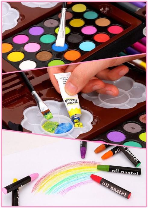 Narudžba mora biti- kad otvorite kofer, naći ćete niz kvalitetnih umjetničkih pribora, lijepo uređenih i osiguranih u predviđenim ladicama. To će olakšati održavanje zaliha čistih i urednih bez brige o oštećenju ili razbijanju omiljenih bojica. Umjetnički set ima nešto za svakoga - slikajući markere, boje za crtanje i slikanje za slikanje. Sve to u zasićenim bojama koje izgledaju sjajno na papiru ili platnu.
