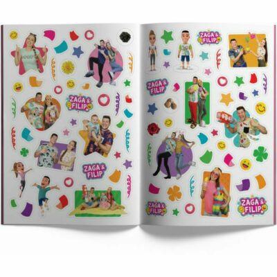 Sa zanimljivim informacijama, zadacima i mnoštvom naljepnica, njihova treća bojanka sadrži i njihovu igru “Obuci Zagu i Filipa!” tako što se odjeća iskruži i možete je onda “isprobavati” na Zagi i Filipu i obući ih po vašoj volji i mašti.