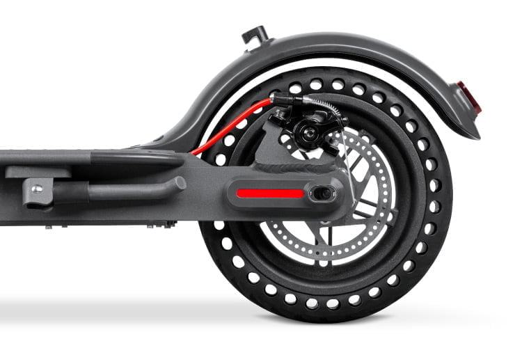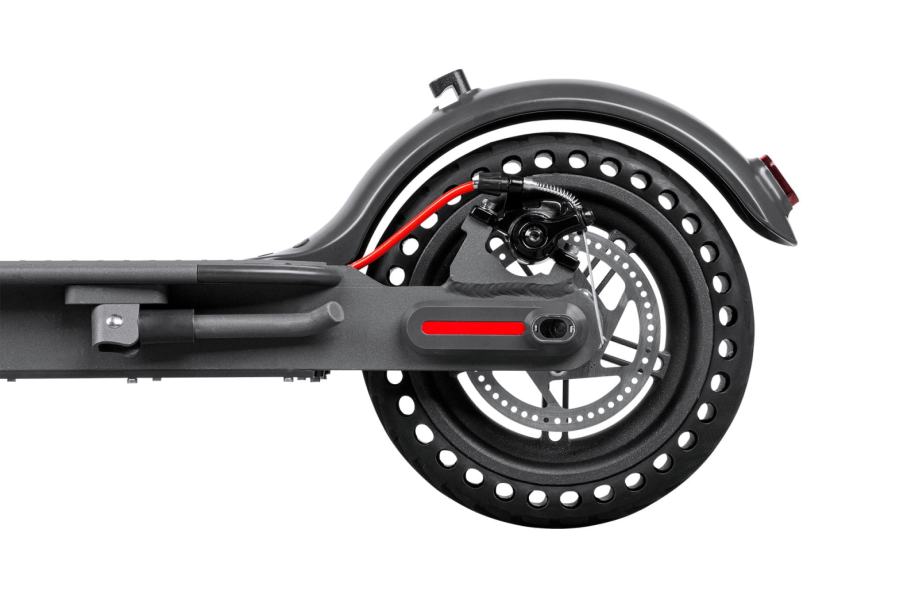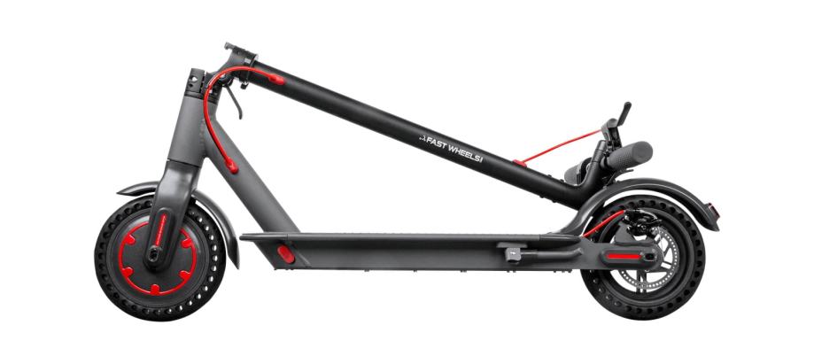 Skuter Fast Wheels Pro opremljen je ručnom kočnicom na kolu, tako da ne morate podizati stopalo s platforme prilikom zaustavljanja. Dodatna prednost takve kočnice nad klasičnom kočnicom noža je trošenje donjeg kotača.