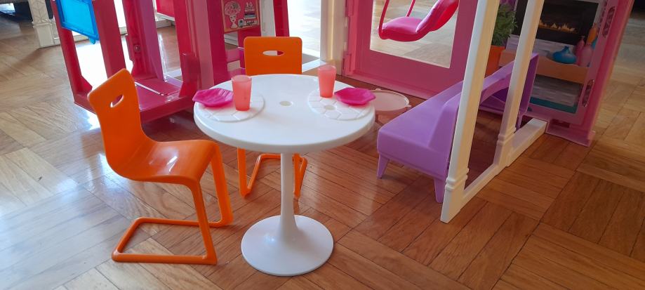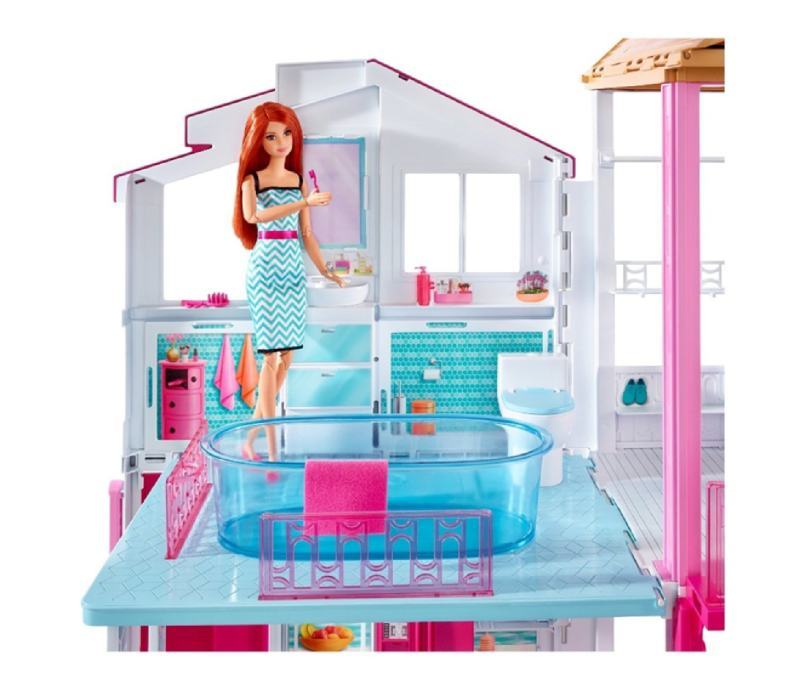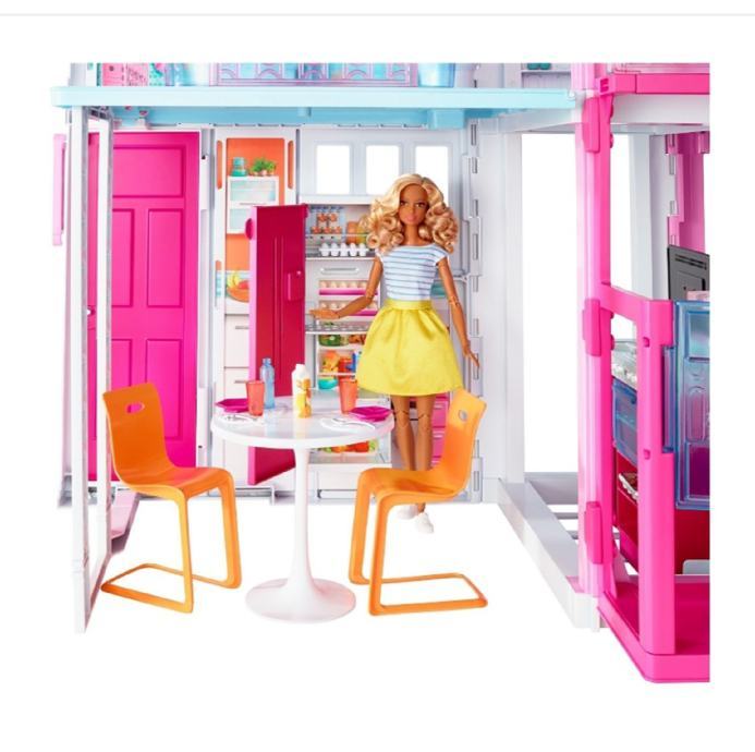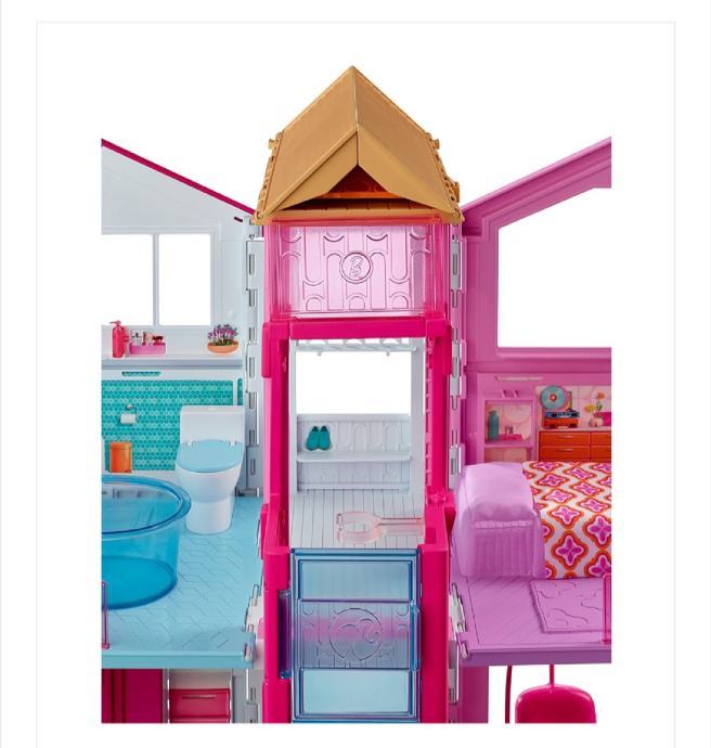 Prvi kat čine kuhinja i dnevni boravak, na drugom katu je kupaonica i spavaća soba. Na krovu se nalazi terasa za sunčanje sa suncobranom koji se lako otvara (prema potrebi i željama) ili se pretvara u krov. Namještaj je suvremenog dizajna i uključuje stol i dvije stolice, kauč, stolić, krevet, kadu i stolicu na ljuljanje. Kuća je sklopiva te zauzima malo mjesta za spremanje dok nije u funkciji. Svi dodatci (vješalice za odjeću, pribor za jelo, kalup za muffine, šareni prekrivač, ....) su veličine lutke Barbie.