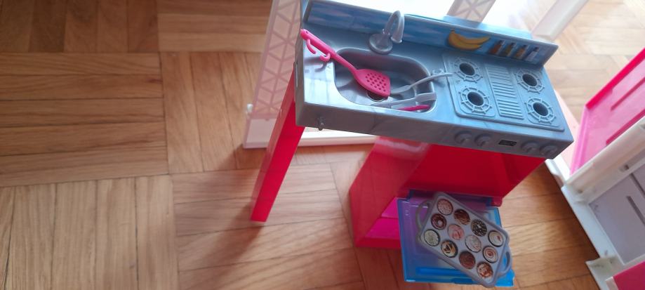 Prodaje se Barbie kuća na tri kata s dizalom sa svim dodatcima sa slika u izvrsnom stanju (Barbie lutke ne dolaze u paketu).