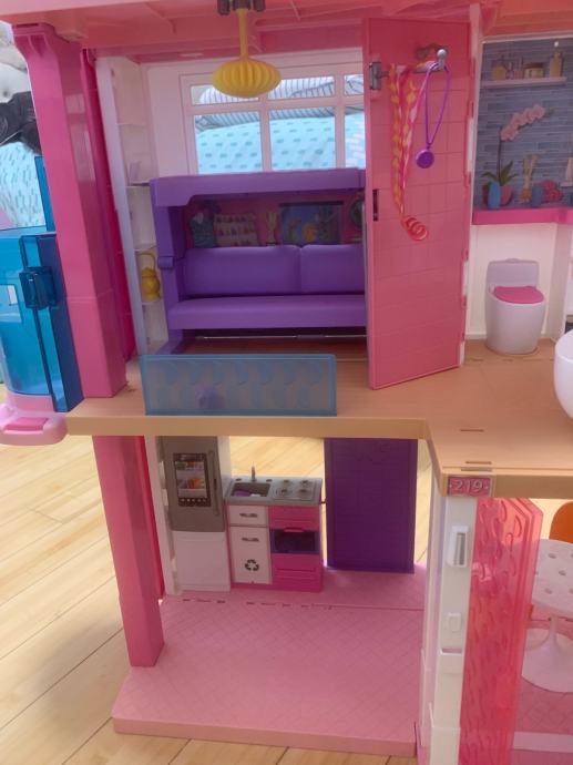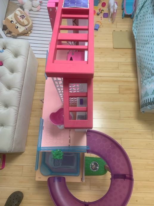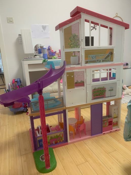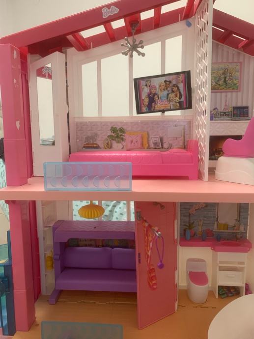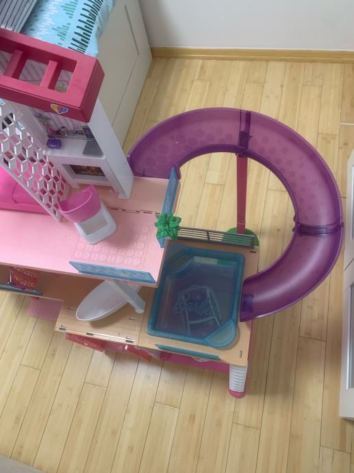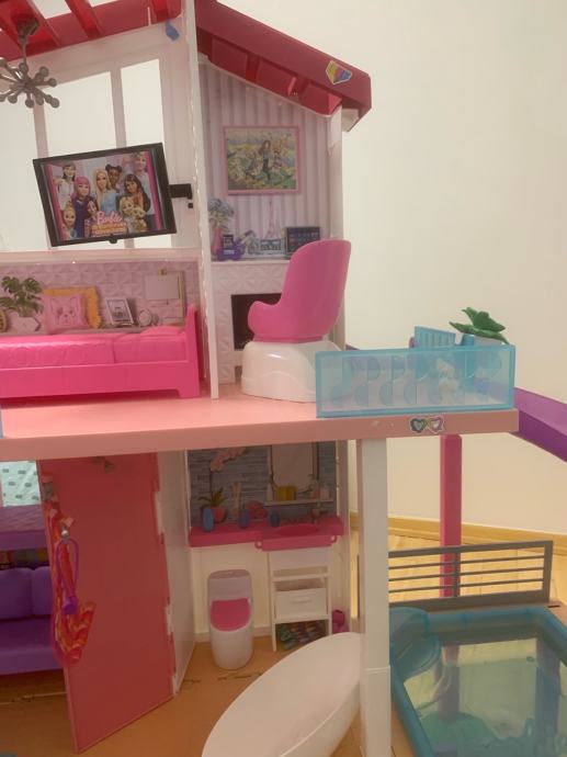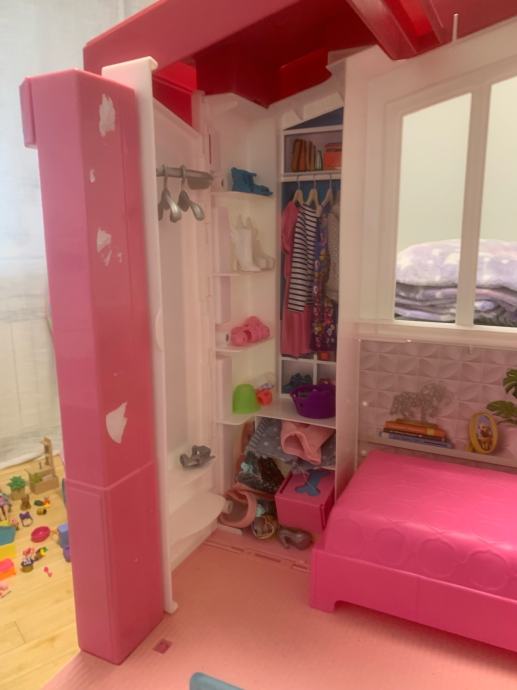 Barbie kućica, dobro očuvana sa puno dodataka i lutkica… (zadnje 2 fotke)