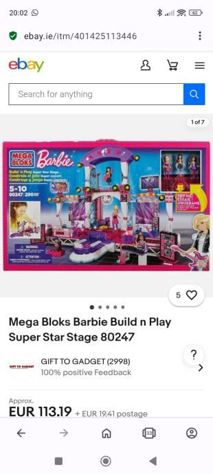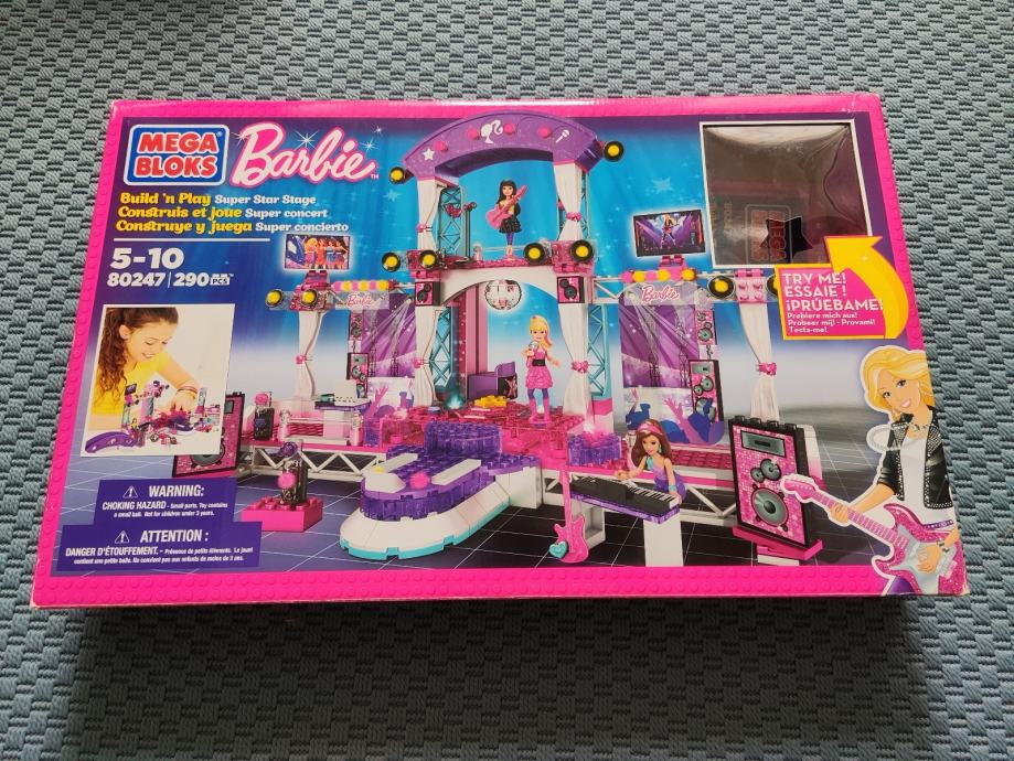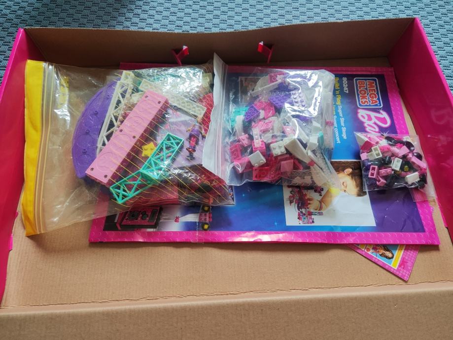 Prodajem kratko korištene Barbie Mega bloks legiće. Sve je uredno sortirano, provjereno i funkcionalno. Puna cijena je preko 110€,a ja prodajem za 30 € jer fali jedna pločica (koja nije bitna za konstrukciju -pogledati slike) i jer je kćer slučajno malo poderala upute, sve se vidi na fotkama. Pozornica ima dodatak na kojem je muzika i svijetlo, mogu naknadno poslati video .