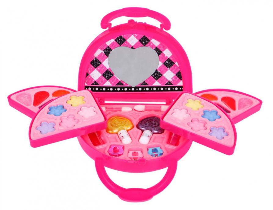 Svaka djevojčica voli gledati svoju mamu kako se šminka i sanja o tome da može namazati usne i oči. Set kozmetike siguran za djecu od 5 godina će se ostvariti. Kozmetika je u praktičnoj torbici tako da mala dama uvijek ih možete imati pri ruci. Set uključuje razne nijanse sjenila, sjajila za usne, ruževe i lakove za nokte te kistove i kopče za kosu.