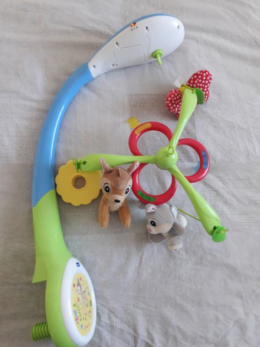 Može se uključiti samo vrtuljak, Bambi projektor, glazba u dva stupnja glasnoće ili sve zajedno. Plišanci se mogu skinuti sa vrtuljka za individualnu igru.