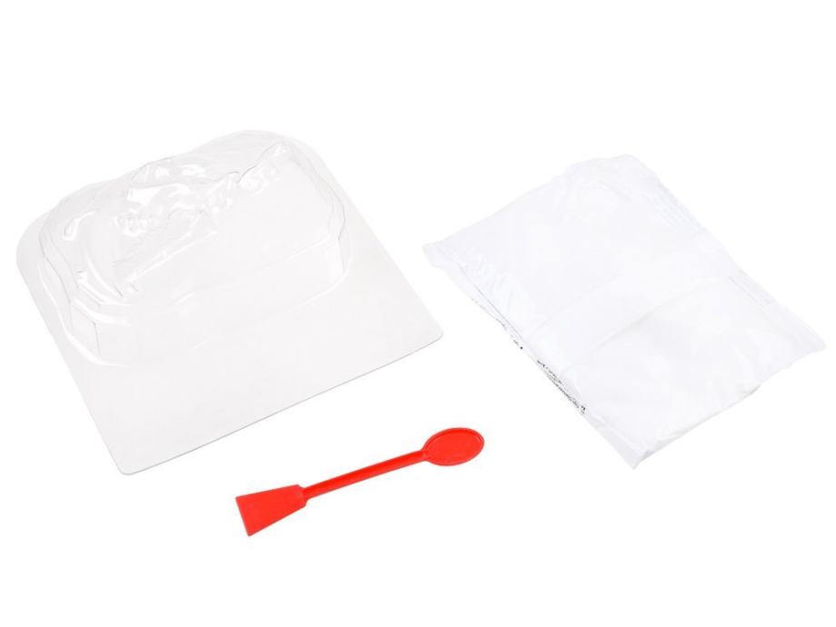 Set uključuje gips i potrebne elemente za izradu okvira. Kosti se mogu spojiti tako da se stvori kostur koji se može postaviti na stalak kao eksponat na radnom stolu ili polici za knjige.