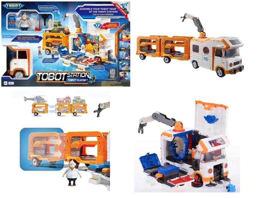 DHL" TOBOT V STATION EQUIPPED WITH TOBOT VEHICLE TRAILER PLAYSET