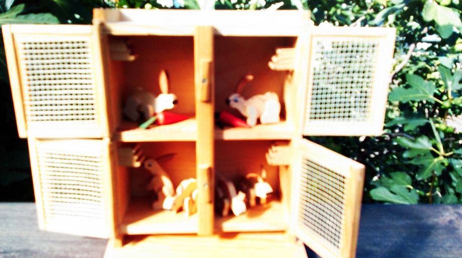 drveni kavezi za zečeve sa šest drvenih zečeva i dvije mrkve. igračka u top stanju, malo korištena,cijena 250kn, drveni kamion 100kn