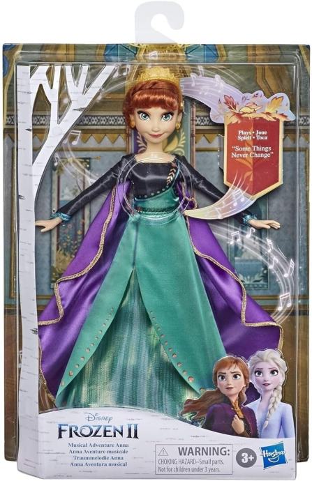 U Disneyjevom Frozen 2, Annin nepokolebljivi optimizam i ustrajnost testirani su na putovanju daleko od doma. Mora naučiti biti jaka čak i kada se to čini nemogućim, i učiniti sljedeću pravu stvar. Djeca mogu pjevati zajedno s lutkom Musical Adventure Anna dok pjeva "Some Things Never Change", pjesmu koja se pojavljuje u Disneyevom filmu Frozen 2. Uključuje baterije tako da glazbena zabava može započeti čim djeca otvore kutiju. Sve što trebaju učiniti je uključiti prekidač na njezinim leđima i pritisnuti gumb na njezinom stezniku kako bi započela zarazna melodija. Djeci će se također svidjeti njezina haljina nadahnuta filmom sa svojim elegantnim dizajnom, zajedno s lepršavim ogrtačem i svjetlucavim detaljima. Modna lutka dolazi s odgovarajućim cipelama, naušnicama i tijarom. Potražite druge Frozen igračke, uključujući lutku Musical Adventure Elsa, kako biste proširili svoju kolekciju Disney lutaka i nastavili s pjevačkim avanturama! (Svaki se prodaje zasebno. Ovisi o dostupnosti.)