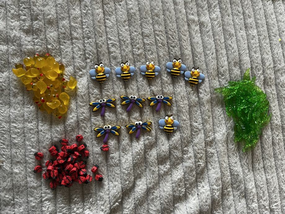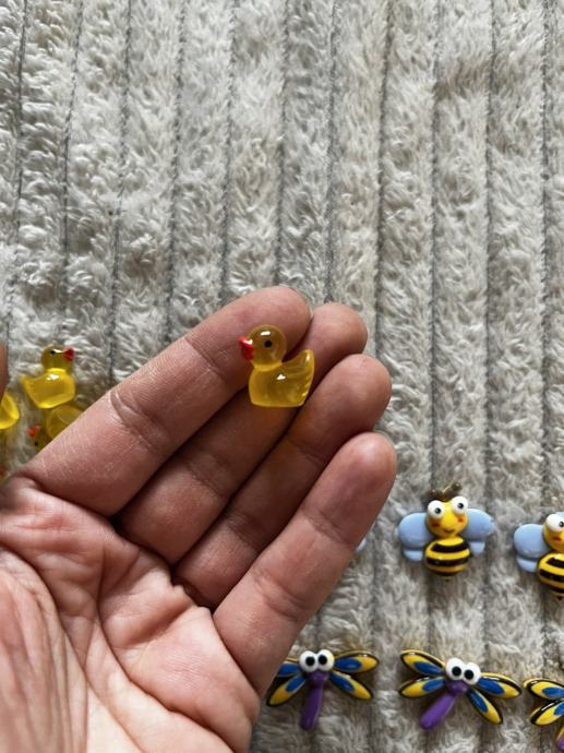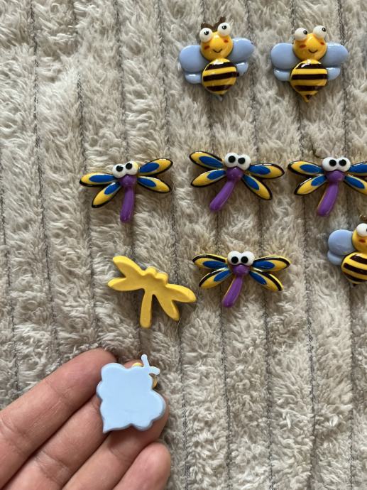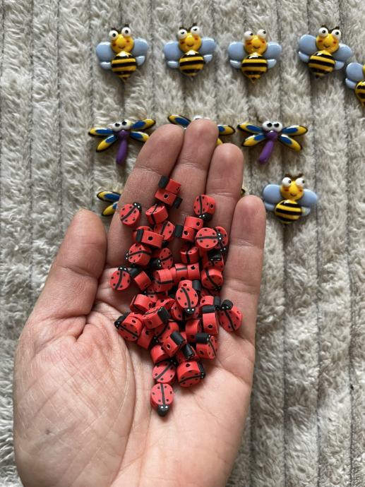 DIY lot bubamara / patka / list / pcela / vretence. Ostalo mi je višak, bubamare i listovi imaju rupice za nakit, ostalo ne.