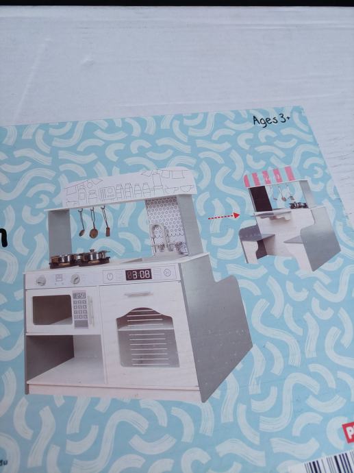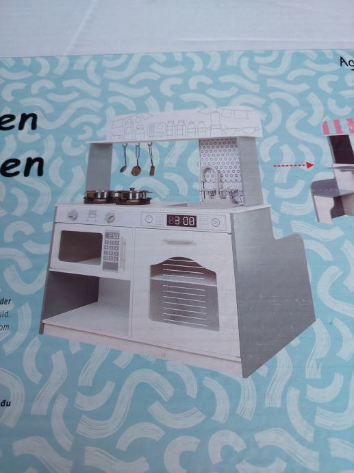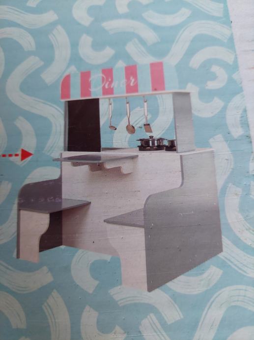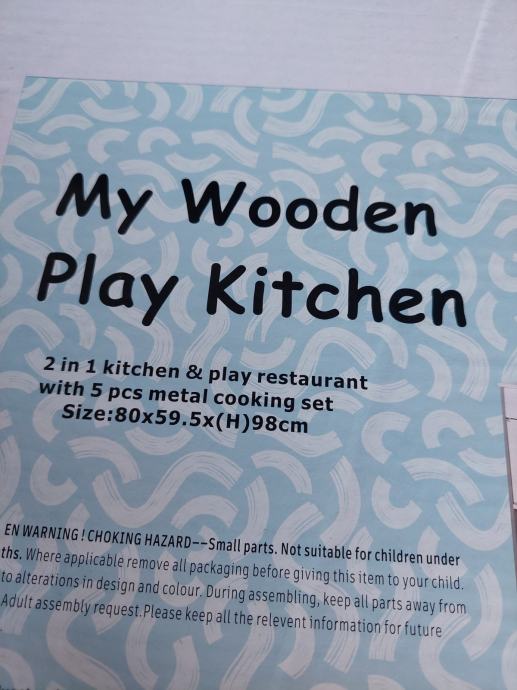 2u1 drvena kuhinja sa restoranom za dugu i bezbrižnu igru sa kompletom od 5 kom metalnog suđa.